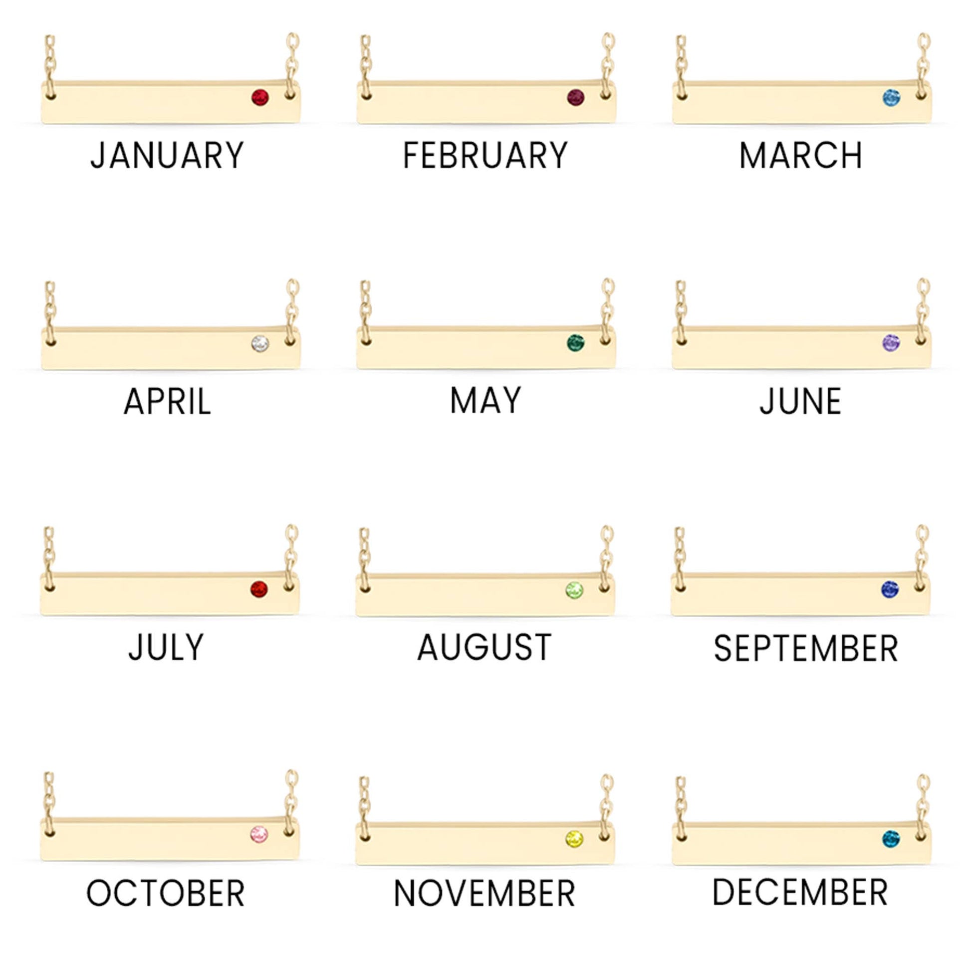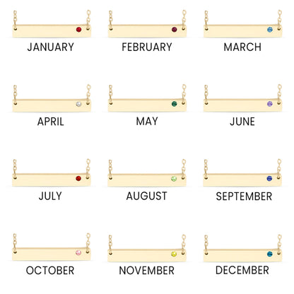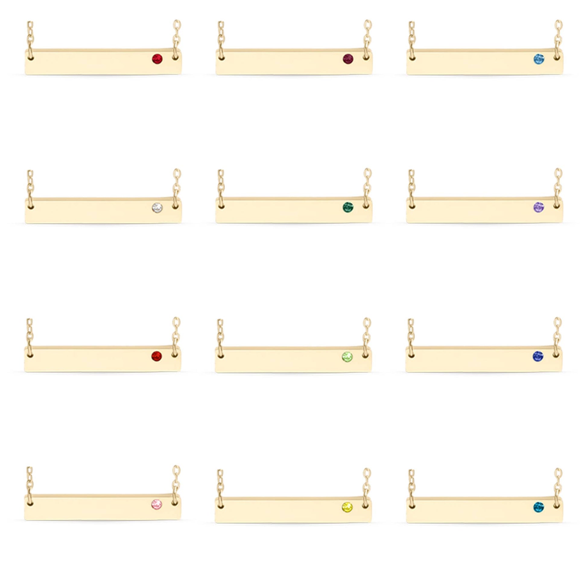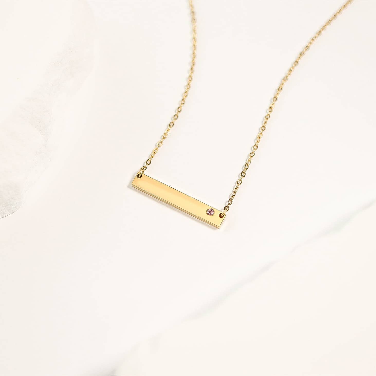 Add a Custom Engraved Gold Stainless Steel Bar Birthstone Necklace