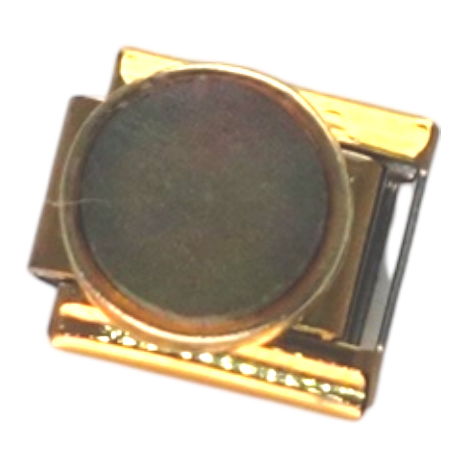 Add timeless elegance to your bracelet with this Black Mother of Pearl Gold Italian Charm. The smooth, iridescent surface of the dark shell catches light beautifully, creating subtle shades of green, purple, and blue. Framed in a gold border, it’s a perfect piece for those who love natural materials and minimalist luxury. This listing is for 1 charm.