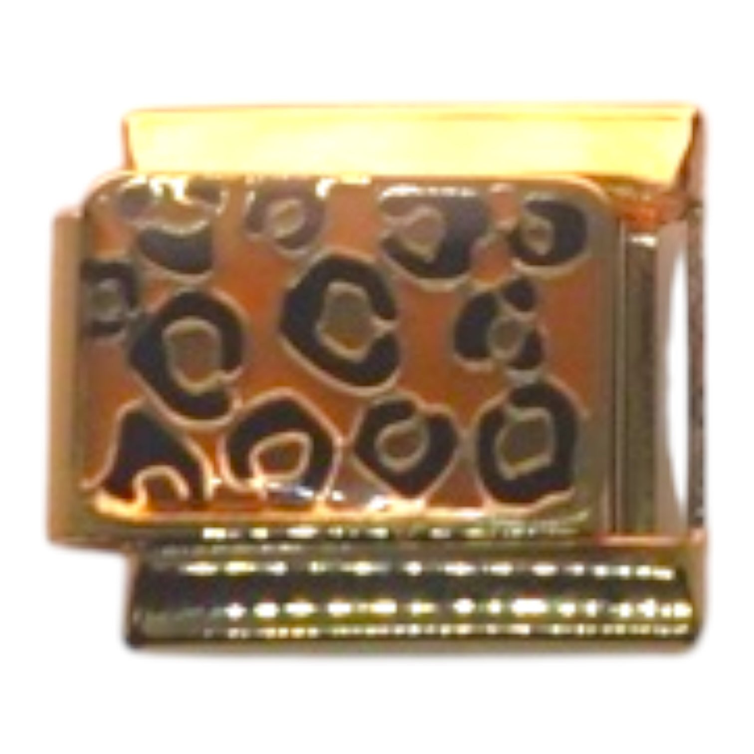 Add a bold and stylish touch to your bracelet with this Leopard Print Gold Italian Charm. Featuring a glossy gold base with a classic black leopard pattern, this charm radiates confidence and flair. Perfect for animal print lovers or anyone who enjoys a trendy, fashionable accessory. This listing is for 1 charm.